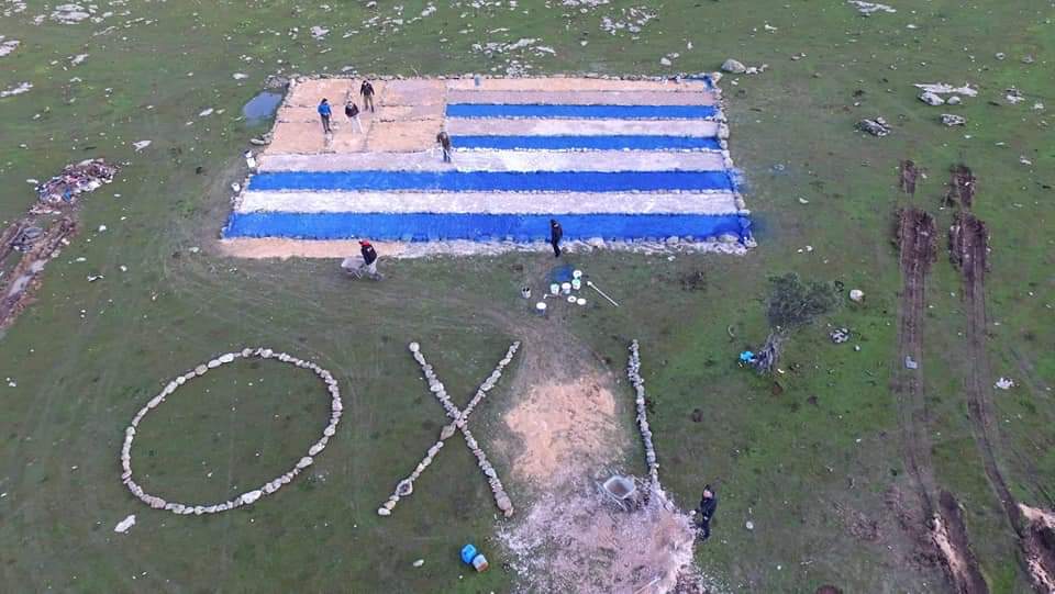 Ήδη πολίτες της Λέσβου σε συνεργασία με την τοπική Κοινότητα Μανταμάδου και τον δήμο Δυτικής Λέσβου κατασκεύασαν στην τοποθεσία όπου θα γίνει η νέα δομή ένα τεράστιο ΟΧΙ και μια τεράστια Ελληνική σημαία…