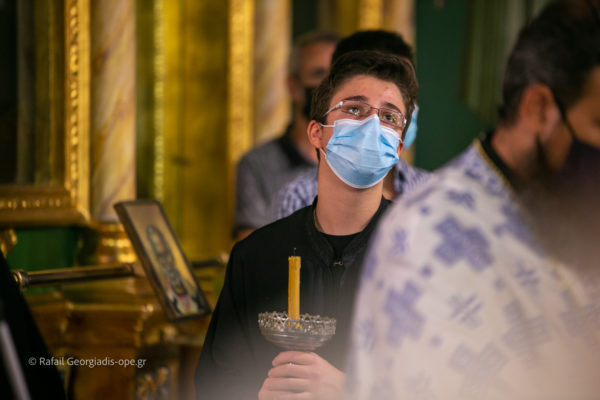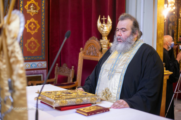 Κατά την διάρκεια του Εσπερινού, ο Θεοφιλέστατος Επίσκοπος ανέγνωσε ευχή για την κατάσβεση των πυρκαγιών.