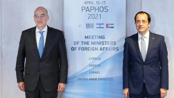 Στο μεταξύ, ο Έλληνας Υπουργός Εξωτερικών βρίσκεται στην Πάφο, για τη συνάντηση υπουργών Εξωτερικών Ελλάδας, Κύπρου, Ισραήλ και Ηνωμένων Αραβικών Εμιράτων.