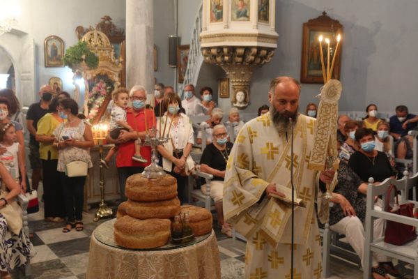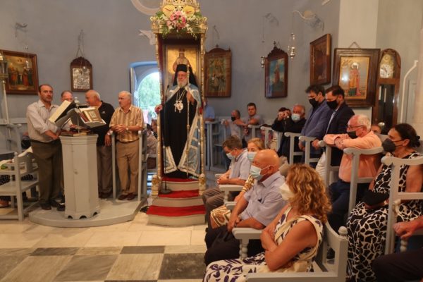 Στην Ιερά Ακολουθία χοροστάτησε ο Σεβασμιώτατος Μητροπολίτης Σύρου κ. Δωρόθεος Β΄, συμπαραστατουμένου του Αρχιερατικού Επιτρόπου και Εφημερίου της Σύρου, με την παρουσία τους ζεύγους και των Ευεργετών και σημερινών ιδιοκτητών του κτήματος Μαρίνης και Αθανασίου Μαρτίνου.