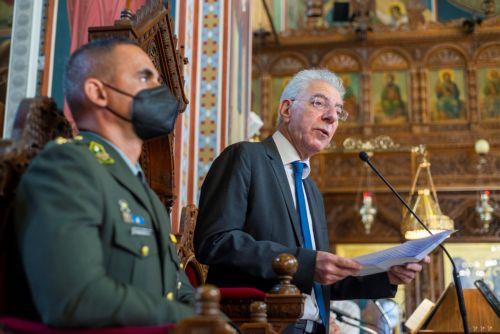Την Κυπριακή πολιτεία εκπροσώπησε ο Υπουργός Υγείας κ. Μιχάλης Χατζηπαντέλα, ο οποίος εκφώνησε και τον επιμνημόσυνο λόγο. Ακολούθησε Τρισάγιο και κατάθεση στεφάνων στο μνημείο ηρώων στην πλατεία Μητροπόλεως.