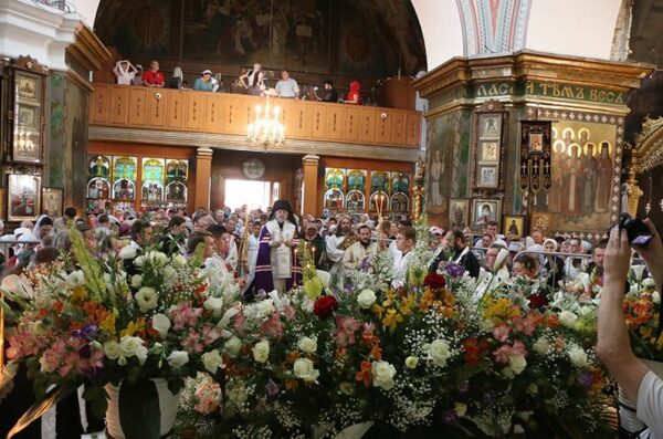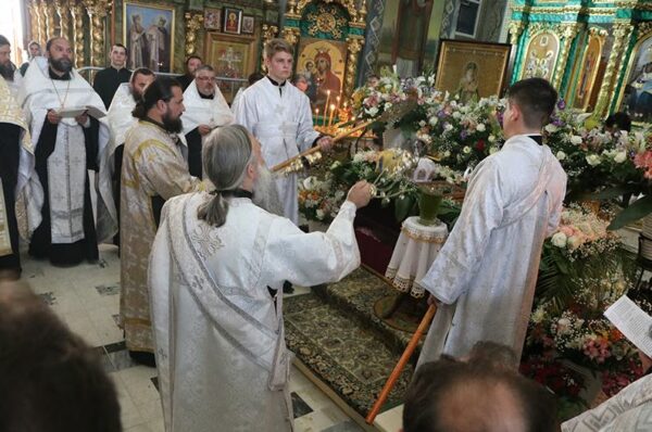 Την κυριώνυμο ημέρα τελέσθηκε η πολυαρχιερατική Θεία Λειτουργία προεξάρχοντος του Σεβ. Μητροπολίτου Συμφερουπόλεως και Κριμαίας κ. Λαζάρου, συμπαραστατούμενος από τον Σεβασμιώτατο Μητροπολίτη Αργολίδος κ. Νεκτάριο, τον Αρχιεπίσκοπο Ελισταίας και Καλμικίας κ. Ιουστιανό, τον Αρχιεπίσκοπο Ζανκόι και Ραζντολνόιε κ. Αλύπιο και τον Επίσκοπο Γιάλτας κ. Νέστορα.