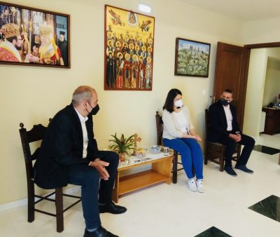 Ο Σεβασμιώτατος υποδέχτηκε την Υπουργό, συνοδευόμενη από τον Βουλευτή κ. Βασίλειο Διγαλάκη, τον περιφερειακό σύμβουλο κ. Ανδρέα Κουκλινό καθώς και το υπηρεσιακό της Επιτελείο, στα γραφεία της Ιεράς Μητροπόλεως.