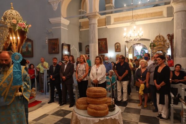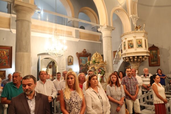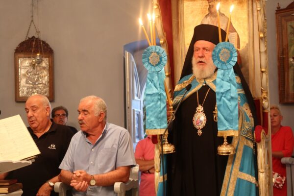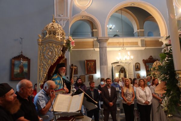 Κάλεσε, τέλος, τους παρισταμένους και τους θεατές του τοπικού Τηλεοπτικού Σταθμού “SYROS TV1”, που αναμετέδιδε απ’ ευθείας την Ακολουθία, να μη λησμονήσουν ποτέ ότι ο Ναός της του Θεού Σοφίας είναι το πνευματικό Αρτοφόριο, που διαφυλάσσει τις μνήμες και της παραδόσεις της Ορθοδοξίας και του Ελληνισμού, και να παραδώσουν το χρέος αυτό προς τα παιδιά τους.