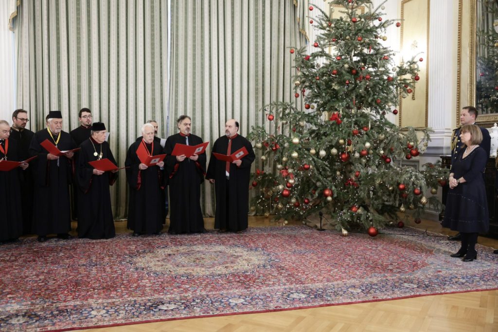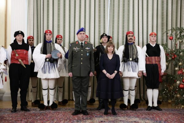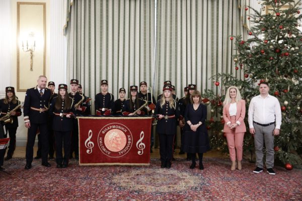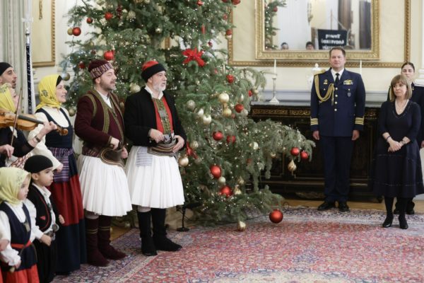 Η Μπάντα των Ενόπλων Δυνάμεων και η Προεδρική Φρουρά έψαλαν τα κάλαντα της Πρωτοχρονιάς στην Πρόεδρο της Δημοκρατίας Κατερίνα Σακελλαροπούλου.