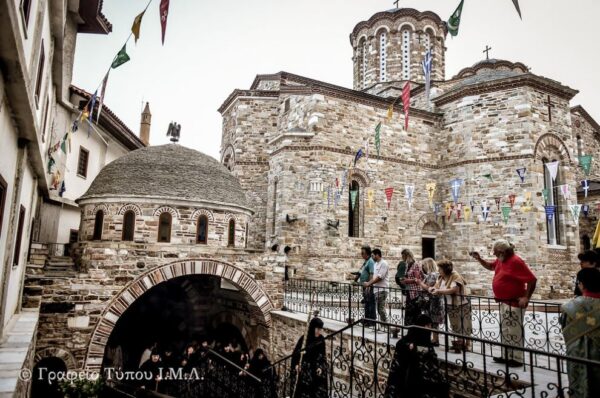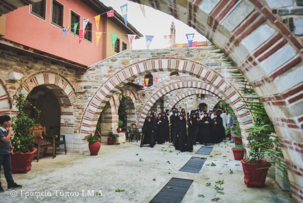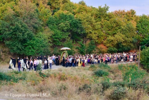 Ακολούθησε Ιερά Λιτάνευση της Εικόνος εντός της Μονής, ενώ έμπροσθεν της Φιάλης πραγματοποιήθηκε η Τελετή του Μικρού Αγιασμού, στο τέλος της οποίας ο Σεβασμιώτατος Μητροπολίτης Λαγκαδά κ.κ. Ιωάννης, αναφέρθηκε εκτενώς στην σημασία του σπουδαίου αυτού γεγονός, το οποίο τελείται καθ΄ έτος, αυτή την χρονική περίοδο στην περιοχή του Σοχού, επισημαίνοντας τους πνευματικούς συνδέσμους της Μητροπόλεως με το Αγιώνυμο Όρος, ενώ δεν παρέλειψε να κάνει και ξεχωριστεί αναφορά στο πρόσωπο του π. Γρηγορίου, προτρέποντας τον διάδοχό του, Αρχιμ. π. Αμφιλόχιο, να συνεχίζει αυτή την σπουδαία πνευματική παρακαταθήκη που άφησε ο μακαριστός γέροντας, προς όφελος όλων των πιστών.