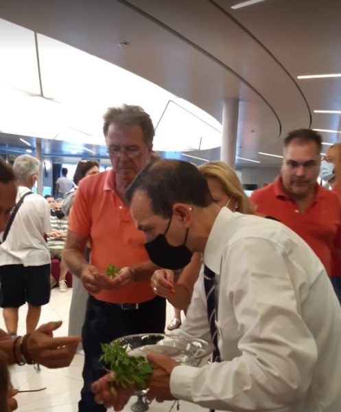 Ο ιερέας της ηρωικής Νήσου των Ψαρών έφερε Αγιασμό για το πλήρωμα και τους επιβάτες. Οι επιβάτες προσκύνησαν την Ιερά Εικόνα, ενώ το πλήρωμα μοίρασε τον Αγιασμό.