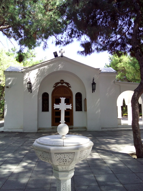 Έξω από το ναό, στα δεξιά της εισόδου του, σώζεται η κολώνα, όπου η Φιλοθέη δέθηκε και μαστιγώθηκε. Οι μοναχές της την μετέφεραν στην κρύπτη της στην Καλογρέζα. Εκεί η Φιλοθέη υποκύπτει στα τραύματά της στις 19 Φεβρουαρίου 1589 μ.Χ.