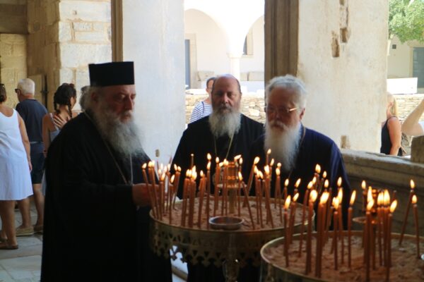 Σήμερα, το μεσημέρι, ο Σεβασμιώτατος Μητροπολίτης Παροναξίας υποδέχτηκε τους προσκεκλημένους για την Πανήγυρη της Παναγίας Εκατονταπυλιανής Επισκόπους, ήτοι τον Σεβασμιώτατο Μητροπολίτην Λαοδικείας κ. Θεοδώρητο και τον Θεοφιλέστατο Επίσκοπο Κερνίτσης κ. Χρύσανθο.