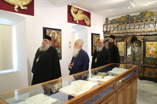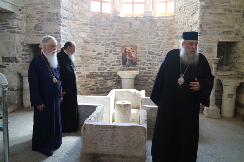 Οι Άγιοι Αρχιερείς αφού προσκύνησαν την Σεπτή Εικόνα της Παναγίας ξεναγήθηκαν στου χώρους του Παλαιοχριστιανικού Ιερού Ναού.