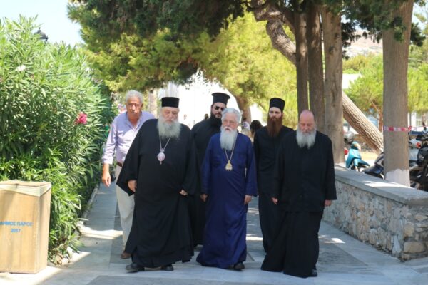 Σήμερα, το μεσημέρι, ο Σεβασμιώτατος Μητροπολίτης Παροναξίας υποδέχτηκε τους προσκεκλημένους για την Πανήγυρη της Παναγίας Εκατονταπυλιανής Επισκόπους, ήτοι τον Σεβασμιώτατο Μητροπολίτην Λαοδικείας κ. Θεοδώρητο και τον Θεοφιλέστατο Επίσκοπο Κερνίτσης κ. Χρύσανθο.