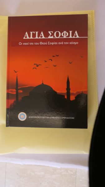 Έχουν προηγηθεί ανάλογες στην Αθήνα και σε άλλες ελληνικές πόλεις, στη Ρώμη, στη Βενετία, τη Φλωρεντία και το Μιλάνο, στη Βασιλεία της Ελβετίας, στο Λονδίνο, στο Παρίσι και στις Βρυξέλλες. Ο τόμος έχει επιδοθεί σε υψηλά ιστάμενους πολιτικούς και θρησκευτικούς ηγέτες, όπως είναι ο Οικουμενικός Πατριάρχης Βαρθολομαίος και προκαθήμενος της Καθολικής Εκκλησίας, πάπας Φραγκίσκος. Έχουμε συναντήσει τους αρμόδιους Επιτρόπους της Κομισιόν, όπως επίσης και τους παράγοντες της ΟΥΝΕΣΚΟ, γιατί ο Ναός της Αγίας Σοφίας είναι στον κατάλογο των προστατευόμενων μνημείων της παγκόσμιας πολιτιστικής κληρονομιάς.