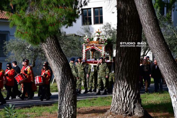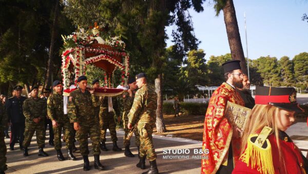 Στρατιώτες περιέφεραν τον Επιτάφιο στο στρατόπεδο Μηχανικού (ΚΕΜΧ) στο Ναύπλιο την Μεγάλη Παρασκευή 26 Απριλίου 2019. Την περιφορά του Επιτάφιου ακολούθησαν ο Διοικητής του Στρατοπέδου Ναυπλίου ΣΧΗΣ (ΜΧ) Γεώργιος Γερανιός, αξιωματικοί, οπλίτες και αρκετοί πολίτες. Της πομπής παιάνιζε πένθιμα η φιλαρμονική του Δήμου Ναυπλιέων υπό την διεύθυνση του μαέστρου Θεοδόση Αντωνιάδη. Την ακολουθία του επιταφίου τέλεσε ο ιερέας π. Θεόδωρος Στεργίου