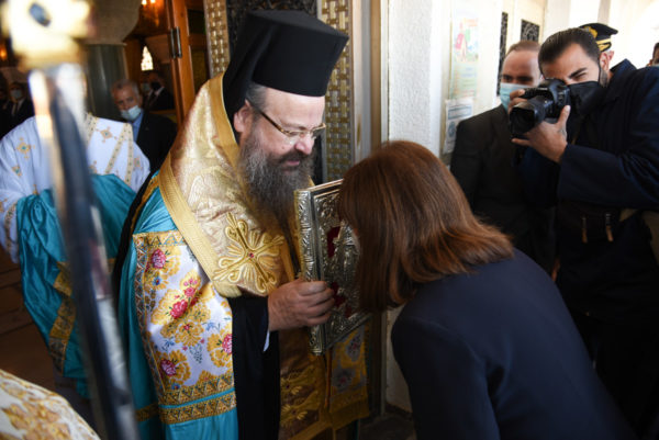 Η Πρόεδρος της Δημοκρατίας ασπαζόμενη το Ιερό Ευαγγέλιο