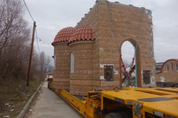 Το κόστος της μεταφοράς των τμημάτων του Ιερού Ναού αγγίζει τις 100.000 ευρώ και αποτελεί δωρεά από την εταιρεία ΙΝΤΡΑΚΑΤ που είναι και εκείνη που μετέφερε και στήνει τον ιερό ναό.