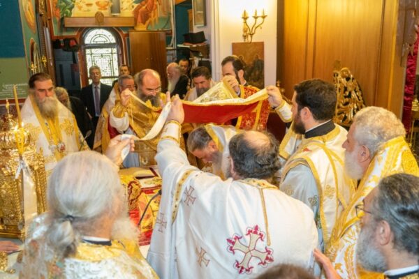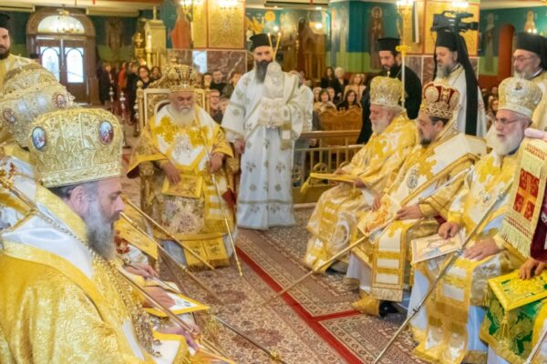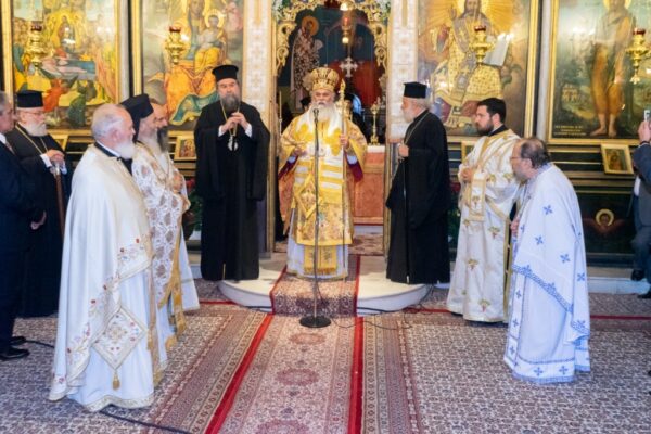 Στην πολυαρχιερατική Θεία Λειτουργία, την οποία παρακολούθησαν εκατοντάδες Αιγιώτες (και όχι μόνο), προεξήρχε ο Σεβασμιώτατος Μητροπολίτης, συλλειτουργούντων των Σεβασμιωτάτων Μητροπολιτών Σερρών και Νιγρίτης κ. Θεολόγου, Σύρου, Τήνου, Άνδρου, Κέας, Μήλου και Μυκόνου κ. Δωροθέου, Σερβίων και Κοζάνης κ. Παύλου, Μεσσηνίας, Μεθώνης, Κορώνης, Πύλου και Ανδρούσης κ. Χρυσοστόμου, Άρτης κ. Καλλινίκου, Ιλίου, Αχαρνών και Πετρουπόλεως κ. Αθηναγόρου, Θεσσαλιώτιδος και Φαναριοφερσάλων κ. Τιμοθέου και Τρίκκης και Σταγών κ. Χρυσοστόμου, και συμπροσευχομένων των Σεβασμιωτάτων Μητροπολιτών πρώην Καλαβρύτων και Αιγιαλείας κ. Αμβροσίου και Μεσογαίας και Λαυρεωτικής κ. Νικολάου.