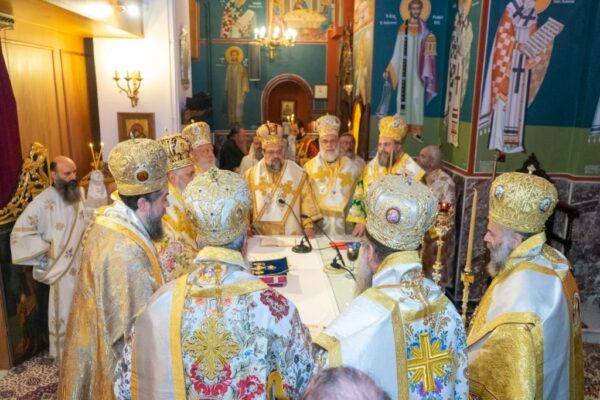 Μετά το πέρας της Θείας Λειτουργίας, ο Σεβασμιώτατος μετέβη στο Επισκοπικό Μέγαρο, προκειμένου να υποδεχθεί στην αίθουσα του Θρόνου τους Αρχιερείς, τον Ιερό Κλήρο αλλά και τους εκατοντάδες ευλαβείς χριστιανούς που ανέμεναν καρτερικά για να του ευχηθούν από κοντά το «Άξιος!».