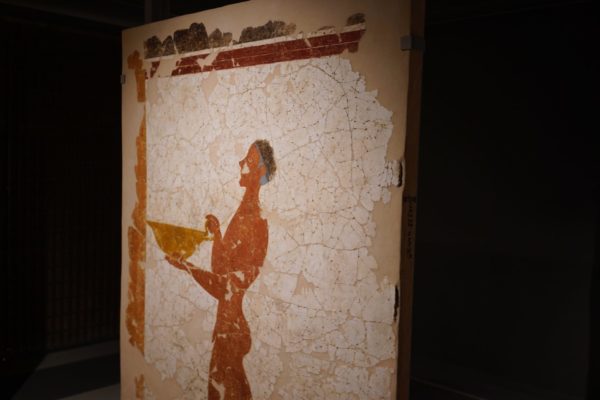 Στη συνέχεια, η κυρία Σακελλαρόπουλου επισκέφθηκε το Μουσείο Προϊστορικής Θήρας και ξεναγήθηκε στην έκθεση «Θηραϊκές τοιχογραφίες – Ο θησαυρός του Προϊστορικού Αιγαίου».