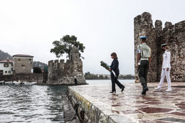 Η Πρόεδρος της Δημοκρατίας Κατερίνα Σακελλαροπούλου παρέστη την Κυριακή 10 Οκτωβρίου 2021 στις εορταστικές εκδηλώσεις που διοργανώνει ο Δήμος Ναυπακτίας για τα 450 χρόνια από τη Ναυμαχία της Ναυπάκτου.