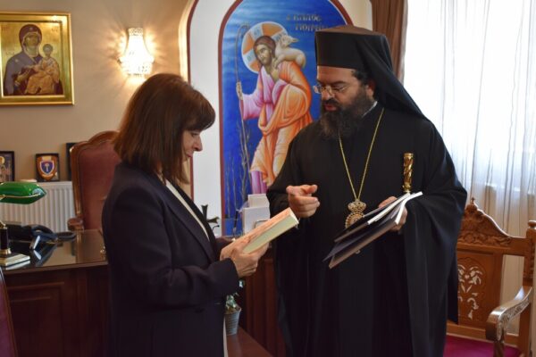 Την Πρόεδρο της Δημοκρατίας κα. Αικατερίνη Σακελλαροπούλου υποδέχτηκε ο Σεβασμιώτατος Μητροπολίτης Μαρωνείας και Κομοτηνής κ. Παντελεήμονας σήμερα το πρωί, 29 Μαΐου 2020. Υπενθυμίζουμε ότι η Πρόεδρος της Δημοκρατίας βρίσκεται στη Θράκη για τριήμερη επίσκεψη. Κατά τη συνάντηση με το Σεβασμιώτατο, συζήτησαν για επίκαιρα θέματα σχετικά με την περιοχή της Ροδόπης.
