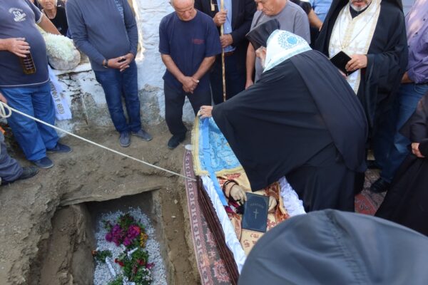 Καταφανώς συγκινημένος ήστατο προ της σωρού του κεκοιμημένου Ηγουμένου ο Διάκονος και αδελφός της μονής Ευδόκιμος Καραπαντελάκης. Ο αοίδιμος Ηγούμενος Αρχιμ. Μακάριος Κοτσίκος ετάφη πλησίον του τάφου του προκατόχου του, Αρχιμ. Αβέρκιου Χρυσολωρά, τον οποίο διεδέχθη στην Ηγουμενία το 1973.