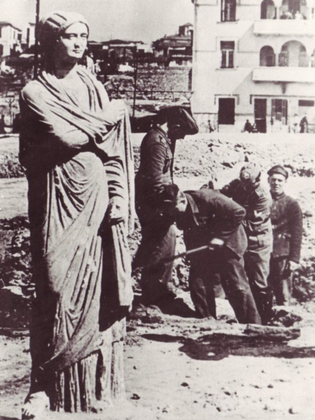 Κατά τις εργασίες για στρατιωτικά έργα οι Γερμανοί κατέστρεψαν νεκρόπολη, στην οποία βρέθηκαν σπουδαία αρχαία.
