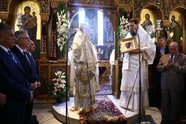 Μετά την ομιλία του κατά το αρχιερατικό συλλείτουργο, πήρε στα χέρια του την Εικόνα της Παναγίας, πιστό αντίγραφο εκείνης που έφεραν οι Μικρασιάτες όταν έφτασαν στη Ν Ιωνία και το παρέδωσε στον Αρχιεπίσκοπο.