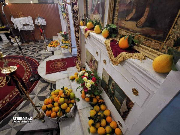 Κάθε χρόνο οι κάτοικοι του χωριού φέρνουν στο ναό πορτοκάλια ,μιας και το κύριο προϊόν της περιοχής είναι το πορτοκάλι και στολίζουν το ναό με αυτά.