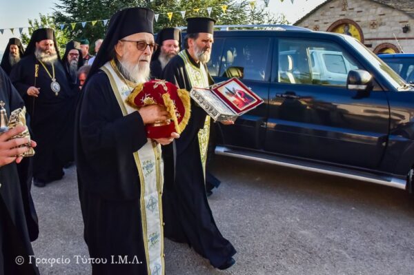 Οι Τελετές ολοκληρώθηκαν με την προσφώνηση του Καθηγουμένου του Ιεράς Μονής Αρχιμ. Ιωαννικίου, ο οποίος και εξέφρασε λόγους ευχαριστίας τόσο προς πρόσωπο του Σεβασμιωτάτου λόγω του γεγονότος τους συνεχές ενδιαφέροντος και της πατρικής του αγάπης που επιδεικνύει για την μοναχική ζωή και τα μοναστήρια της επαρχία μας, όσο και προς όλους όσους βοήθησαν με διαφόρους τρόπους, ώστε να φτάσουμε στην σημερινή μεγάλη και ευλογημένη ημέρα.