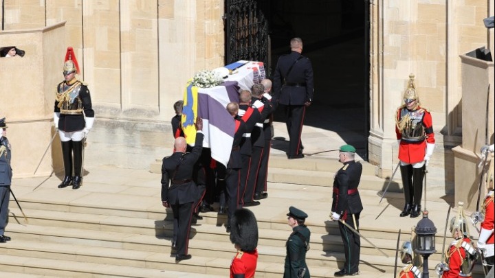 Το Ηνωμένο Βασίλειο τήρησε ενός λεπτού σιγή την ώρα που η βασιλική οικογένεια προσερχόταν ενωμένη στην τελετή της κηδείας του πρίγκιπα Φίλιππου, ο οποίος επί περισσότερες από επτά δεκαετίες υποστήριξε αδιαλείπτως την βασίλισσα Ελισάβετ και υπηρέτησε το στέμμα.