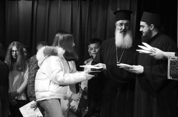 Την βράβευση των παιδιών πραγματοποίησε ο οικείος ποιμενάρχης, μαζί τον εκπρόσωπο του Καθηγουμένου της Ιεράς Μεγίστης Μονής Βατοπαιδίου, Ιερομόναχο Μάξιμο Βατοπαιδινό.
