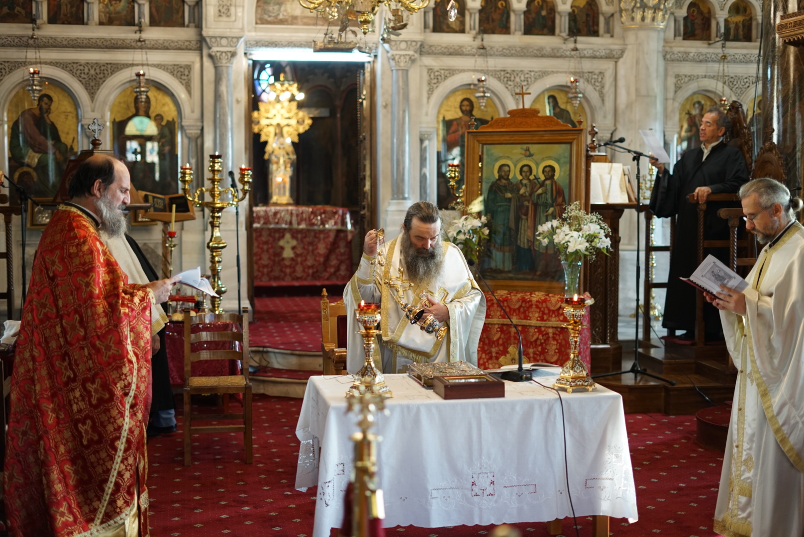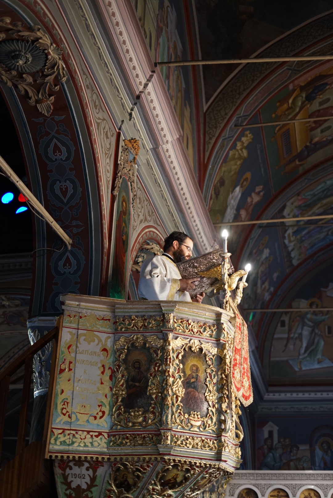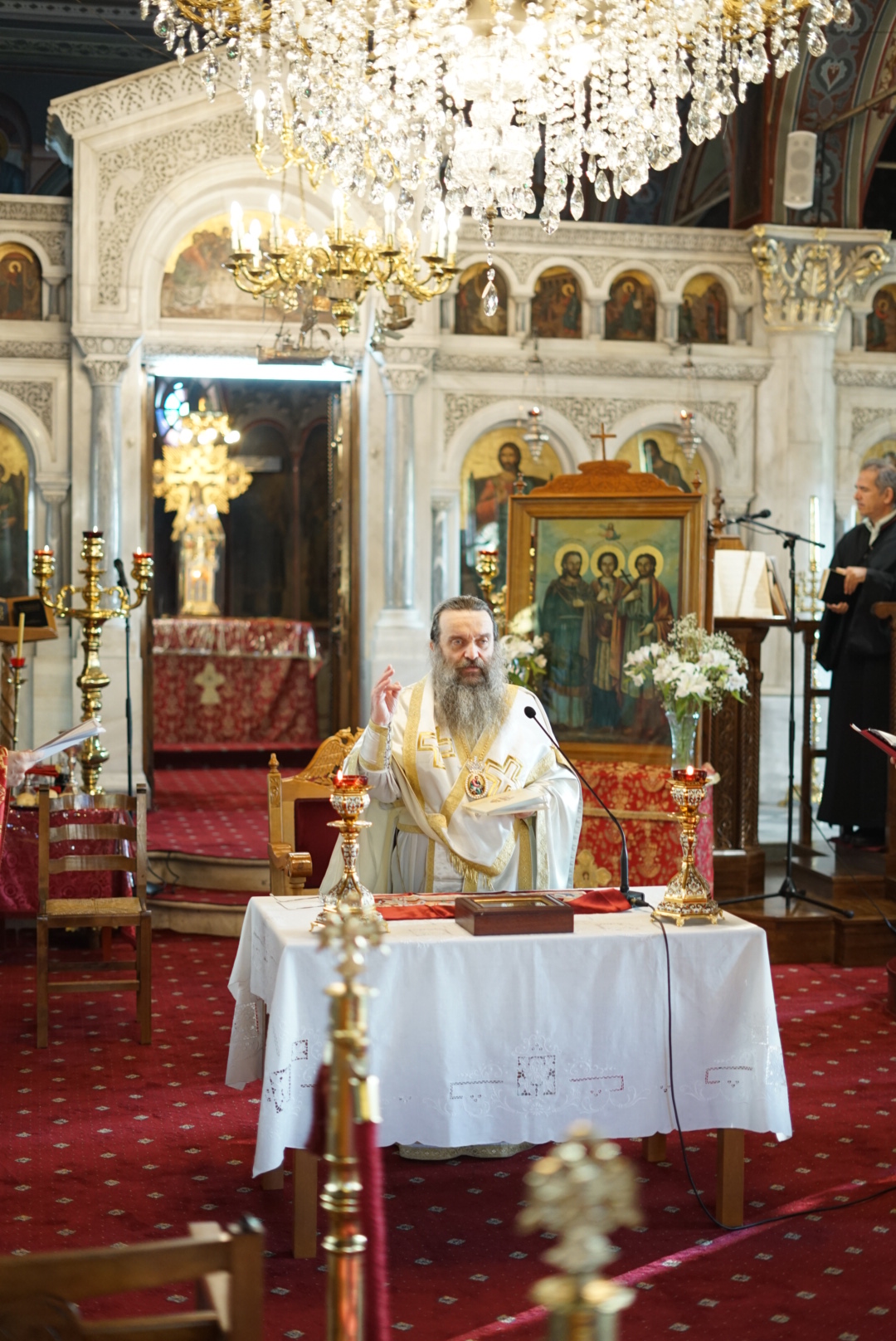 Τηρουμένων τῶν ὑγειονομικῶν μέτρων ὁ Σεβασμιώτατος Μητροπολίτης Χίου, Ψαρῶν καί Οἰνουσσῶν κ. Μᾶρκος συνελειτούργησε μέ τούς Πρωτοπρ. Γεώργιον Λοῦρον, Πρωτοπρ. Κήρυκον Φαράκλαν καί Ἀρχιδιάκ. Ἀπόστολον Λάρδαν, συμπροσευχομένου τοῦ Ἐφημερίου τοῦ Ἱ. Ναοῦ Πρωτοπρ. Ἀντωνίου Παλαιοῦ καί ψάλοντος τοῦ Πρωτοψάλτου κ. Σταύρου Στείρου. Στό Θεῖον Κήρυγμα ὁ Σεβασμιώτατος ἀνεφέρθη σέ ἱκεσίες τόσον ἀπό τήν Θ. Λειτουργία τοῦ Ἁγίου Μάρκου «τήν ταπεινήν καί ἐλεεινήν καί φιλόχριστον πόλιν ταύτην ῥῦσαι αὐτήν, ὁ Θεός….ἀπό…λοιμοῦ…. ὡς καί Νινευί τῆς πόλεως ἐφείσω… διά τόν μάρτυρα καί Εὐαγγελιστήν Μᾶρκον, τόν ὑποδείξαντα ἡμῖν ὁδόν τῆς σωτηρίας» καί «τούς νοσοῦντας, Κύριε, τοῦ λαοῦ σου ἐπισκεψάμενος ἐν ἐλέει καί οἰκτιρμοῖς ἴασαι∙ ἀπόστησον ἀπ’αὐτῶν καί ἀφ’ ἡμῶν πᾶσαν νόσον καί μαλακίαν, τό νεῦμα τῆς ἀσθενείας ἐξέλασον ἀπ’αὐτῶν∙ τούς ἐν μακροῖς ἀρρωστήμασι προκατακειμένους ἐξανάστησον… τάς κατά ψυχήν νόσους ἴασαι, τάς σωματικάς ἀσθενείας θεράπευσον, ἰατρέ ψυχῶν καί σωμάτων», ὅσον καί ἀπό τήν Ἀκολουθίαν τοῦ Ἁγίου Ἀγγελῆ «Μάρτυς ἀθλοφόρε Ἀγγελῆ, ταῖς σαῖς πρός Θεόν ἱκεσίαις, παῦσον τήν ἔφοδον, τοῦ λοιμοῦ καί κόπασον, τόν μέγαν ὄλεθρον, καί ἀπέλασον τέλειον, ἀπό τῶν τιμώντων, τήν σεπτήν σου ἄθλησιν, τήν δεινήν μάστιγα, καί τήν φρικαλέαν ῥομφαίαν, στῆσον καθ’ ἡμῶν φερομένην, τοῦ πικροῦ θανάτου εὐσυμπάθητε», στίς ὁποῖες γίνεται παράκληση γιά θεραπεία λοιμωδῶν νόσων καί τό ἐπικαιροποίησε στήν σημερινή κατάσταση, εὐχόμενος ἰδιαιτέρως διά τούς ἀσθενεῖς, τούς ἰατρούς, τούς νοσηλευτές καί τούς ἐπιστήμονες.
