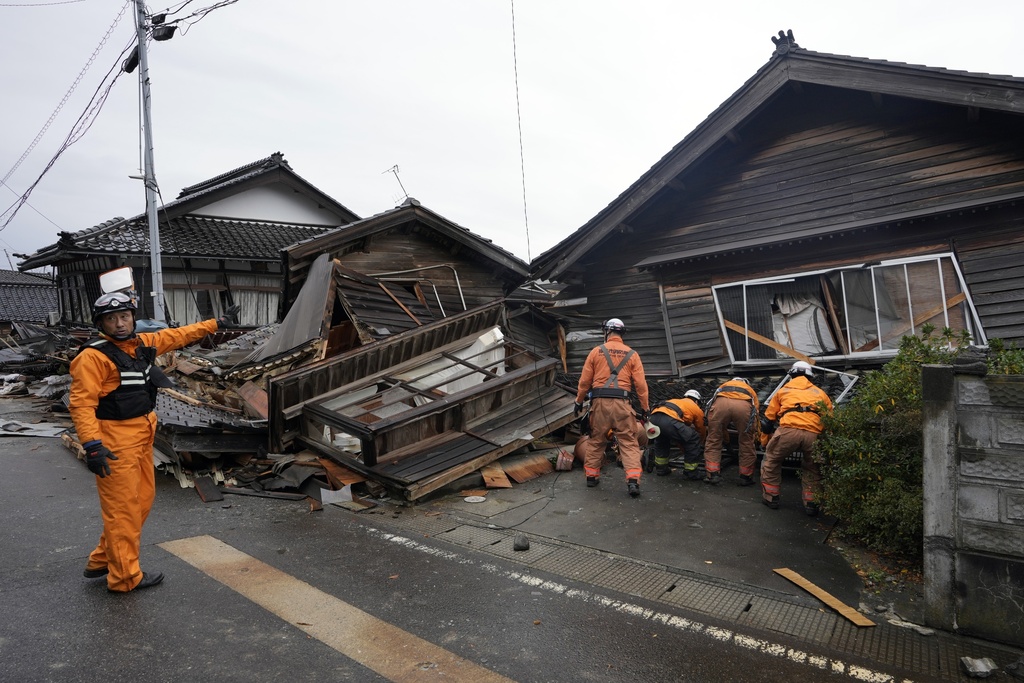 Παράλληλα, συνεχίζονται πυρετωδώς οι εργασίες των ομάδων διάσωσης, για τον απεγκλωβισμό ανθρώπων από τα ερείπια που άφησε πίσω του ο ισχυρός σεισμός των 7,6 Ρίχτερ που χτύπησε την κεντρική Ιαπωνία την Πρωτοχρονιά και μέχρι στιγμής έχει σαν τραγικό απολογισμό 62 νεκρούς, 300 τραυματίες και ζημιές εκατοντάδων εκατομμυρίων δολαρίων, ενώ συνεχίζεται μια ακολουθία δεκάδων μικρότερων μετασεισμών, μεταξύ αυτών και ένας έντασης 5,5 Ρίχτερ σήμερα το πρωί. Πρόκειται για το πλέον πολύνεκρο χτύπημα του Εγκέλαδου από το 2016 και μετά.