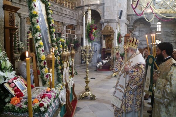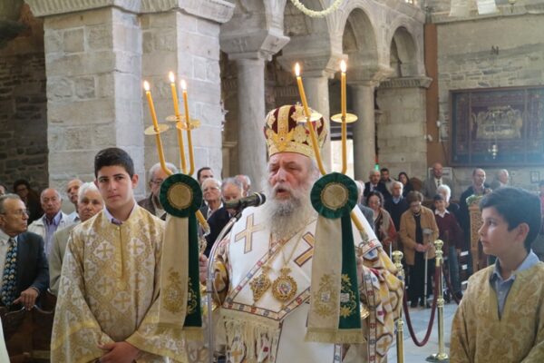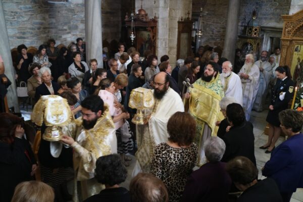 Της Αρχιερατικής Θείας Λειτουργίας προεξήρχε ο Σεβασμιώτατος Ποιμενάρχης Παροναξίας, κ. Καλλίνικος.