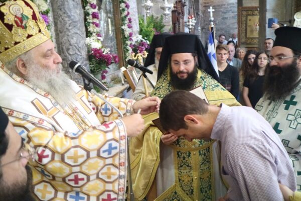 Προ της Απολύσεως, ο Σεβασμιώτατος τέλεσε την Χειροθεσία εις Αναγνώστη του κ. Δημητρίου Καραπαναγιώτη, Υποπυραγού και Προϊσταμένου του Πυροσβεστικού Κλιμακίου Πάρου. Εν συνεχεία προέστη της Ιεράς Λιτανεύσεως των Ιερών Εικόνων και των Σεπτών Λειψάνων της Οσίας.