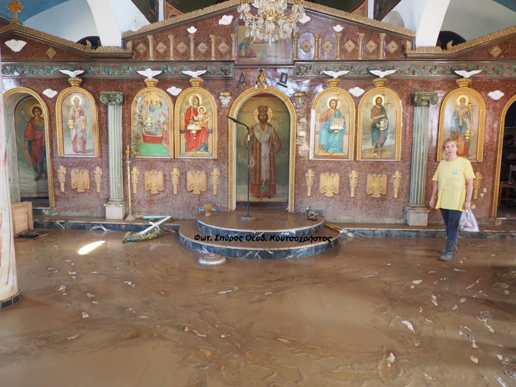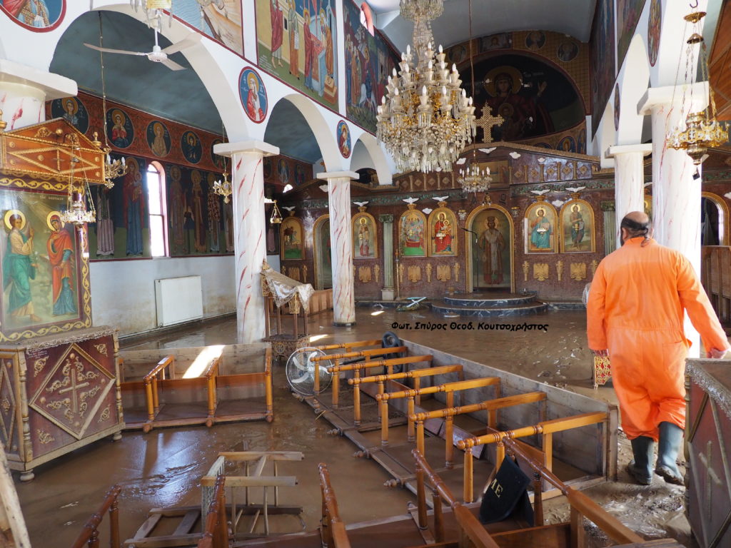Στις τοπικές κοινότητες Ορφανών και Αστρίτσας, του Δήμου Παλαμά Καρδίτσας, το “αποτύπωμα ” της κακοκαιρίας Daniel,  στους Ιερούς Ναούς είναι αποκαρδιωτικό! Το ύψος του νερού και της λάσπης  ήταν τόσο , που δεν μπορούσε να ξεκινήσει αποιαδήποτε εργασία καθαρισμού στο εσωτερικό τους, πριν από το Σάββατο 16 Σεπτεμβρίου 2023.