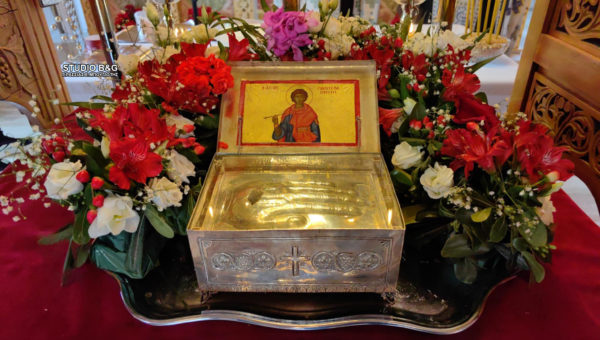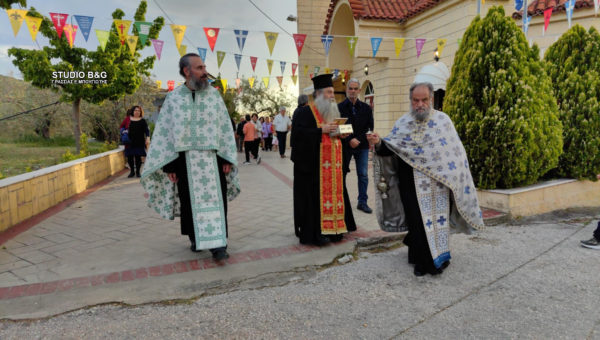 Η υποδοχή των Ιερών λειψάνων έγινε παρουσία , κλήρου και λαού στην είσοδο του χωριού και με λιτανεία τα Ιερά λείψανα μεταφέρθηκαν στον Ιερό ναό “Αγίου Ραφαήλ ” και τέθηκαν προς προσκύνηση. Τα ιερά λείψανα έφερε στο ναό ο πρωτοπρεσβύτερος π. Ανδρέας Βλαχιώτης από τις πολύχρυσες Μυκήνες.