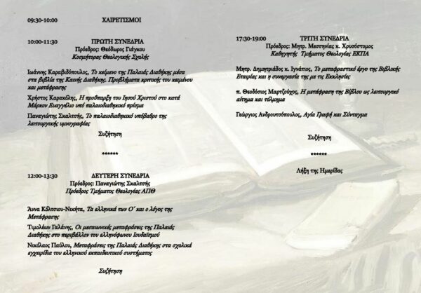 Επιστημονική Ημερίδα “Η μετάφραση της Παλαιάς Διαθήκης: Πρόκληση ή Αναγκαιότητα;”.