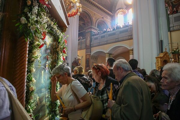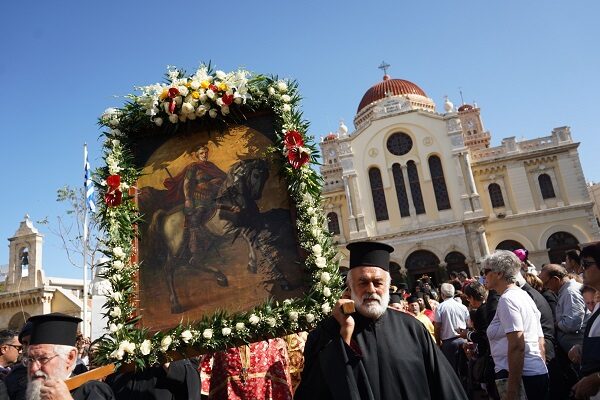 Μετά τη δοξολογία, ακολούθησε η λιτάνευση της Ιερής Εικόνας στους δρόμους του Ηρακλείου.