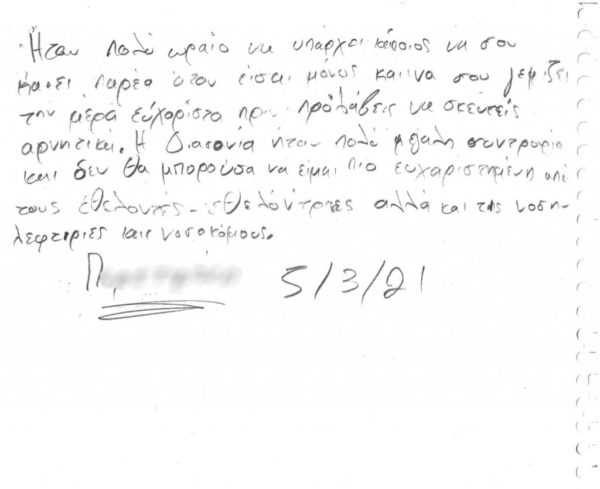 Η “Διακονία” ήταν πολύ μεγάλη συντροφιά και δεν θα μπορούσα να είμαι πιο ευχαριστημένη από τους εθελοντές-εθελόντριες αλλά και τις νοσηλεύτριες και νοσοκόμους. Π… 5/3/2021″