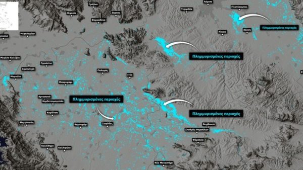 Δορυφορική απεικόνιση των πλημμυρών στη Θεσσαλία – Περίπου 720.000 στρέμματα οι πλημμυρισμένες εκτάσεις