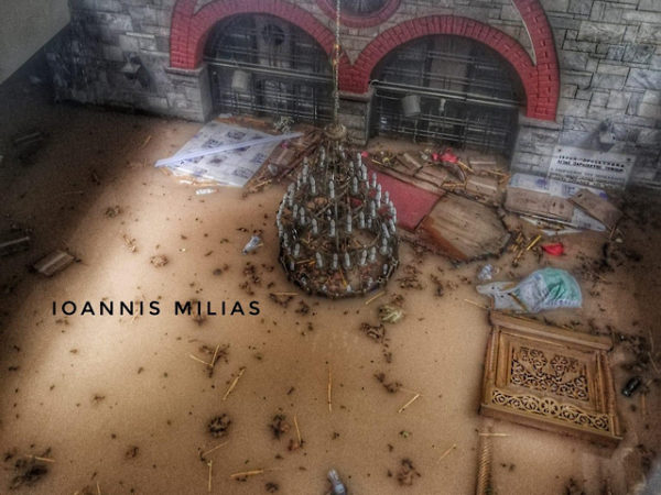 Από την έντονη βροχόπτωση είχε πλημμυρίσει η εκκλησία στον Παλαμά Καρδίτσας.