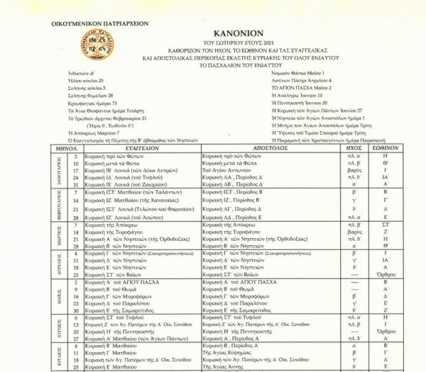 ΚΑΝΟΝΙΟΝ ΕΝΙΑΥΤΟΥ 2021, όπως δημοσιεύεται εκ μέρους του επισήμου ιστοτόπου της Ιεράς Μητροπόλεως Αλεξανδρουπόλεως.