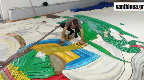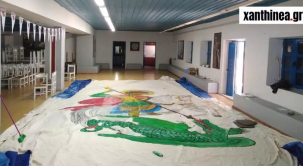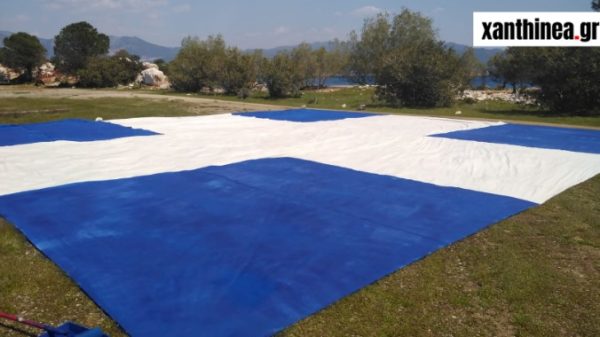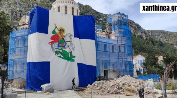 Μια τεράστια ελληνική σημαία με τον Άγιο Γεώργιο ανυψώθηκε στο Καστελόριζο και αποτελεί το έργο του καλλιτέχνη από την Ξάνθη, Στράτου Μυλωνά.