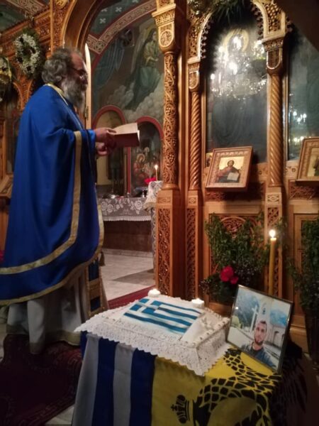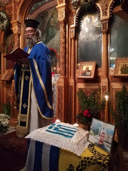 Ἀκολούθως ἐψάλη Τρισάγιο ὑπέρ Ἀναπαύσεως τῶν ἡρωικῶς ἀγωνισαμένων καί πεσόντων στά Βορειοηπειρωτικά ὄρη, καθώς καί τοῦ νέου Ἐθνομάρτυρος Κωνσταντίνου Κατσίφα, ὁ ὁποῖος πρίν ἕνα χρόνο ἀκριβῶς τήν ἴδια μέρα καί κάτω ἀπό ἀδιευκρίνιστες ἀκόμη συνθῆκες θυσιάστηκε γιά τό Ἔθνος.