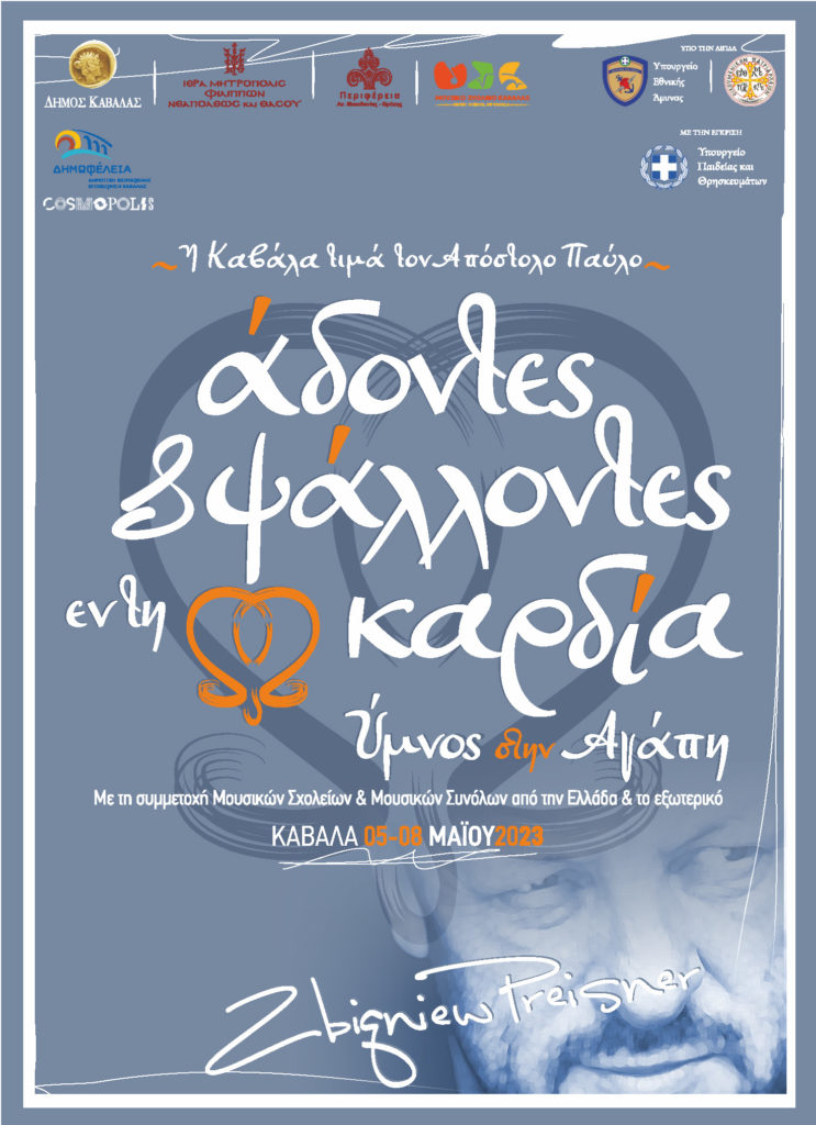 04/05/2023 04/05/2023 Η πόλη της Καβάλας και η τοπική κοινωνία συνολικά τιμούν και φέτος τον πολιούχο τους Απόστολο Παύλο, στο πλαίσιο του ετήσιου μουσικού μαθητικού φεστιβάλ με τίτλο «’Αδοντες καί Ψάλλοντες ἐν τῇ καρδίᾳ…». Πρόκειται για ένα γεμάτο τετραήμερο ποικίλλων πολιτιστικών εκδηλώσεων και δράσεων, εφάμιλλων της τιμής που πρέπει να αποδοθεί στο πρόσωπο του κορυφαίου Απόστολου των...