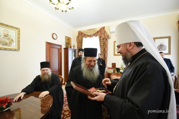 Καλωσορίζοντας τον Γέροντα Ελισσαίο, ο Μητροπολίτης Κιέβου εξέφρασε τις ευχαριστίες του για την τιμή που του έκανε να παραβρίσκεται στην Ουκρανία με αφορμή τον ένα χρόνο από την Ενθρόνιση του.