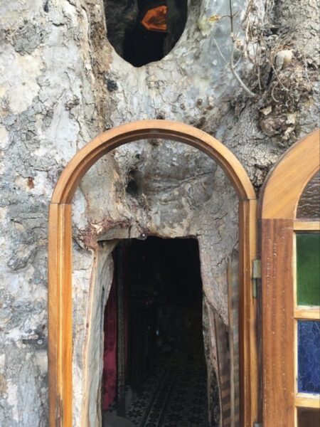 Το προσκύνημα προέκυψε από την ένωση τριών πλατάνων, ενώ στον ιερό ναό που βρίσκεται στη βάση τους, χωρούν έως και 20 προσκυνητές.