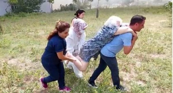 Καθώς η οροφή παραδόθηκε στις φλόγες, το κτίριο γέμισε καπνό, με αποτέλεσμα ασθενείς να απομακρυνθούν από το κτίριο από υγειονομικούς, πυροσβέστες, αστυνομικούς και πολίτες. Μάλιστα, κάποιοι από αυτούς μεταφέρθηκαν στα χέρια, άλλοι με αναπηρικά καροτσάκια ή και σε φορεία. Το νοσοκομείο εκκενώθηκε, καθώς οι φλόγες κατέκλυσαν σε λίγη ώρα ολόκληρη την οροφή του κτιρίου.
