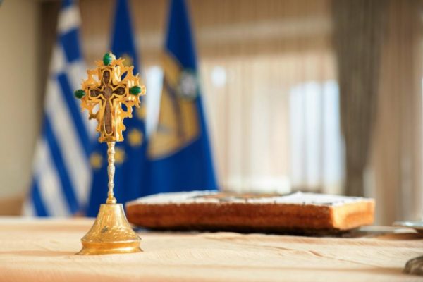 Την Αγιοβασιλόπιτα του Υπουργείου Εθνικής Άμυνας ευλόγησε, χθες, ο Διευθυντής του Σώματος Στρατιωτικών Ιερέων, Αρχιμανδρίτης π. Μελέτιος Κουράκλης, παρουσία του υπουργού Εθνικής Άμυνας Νίκου Παναγιωτόπουλου, της Πολιτικής και της Στρατιωτικής Ηγεσίας, καθώς και των στελεχών που υπηρετούν στο Υπουργείο.